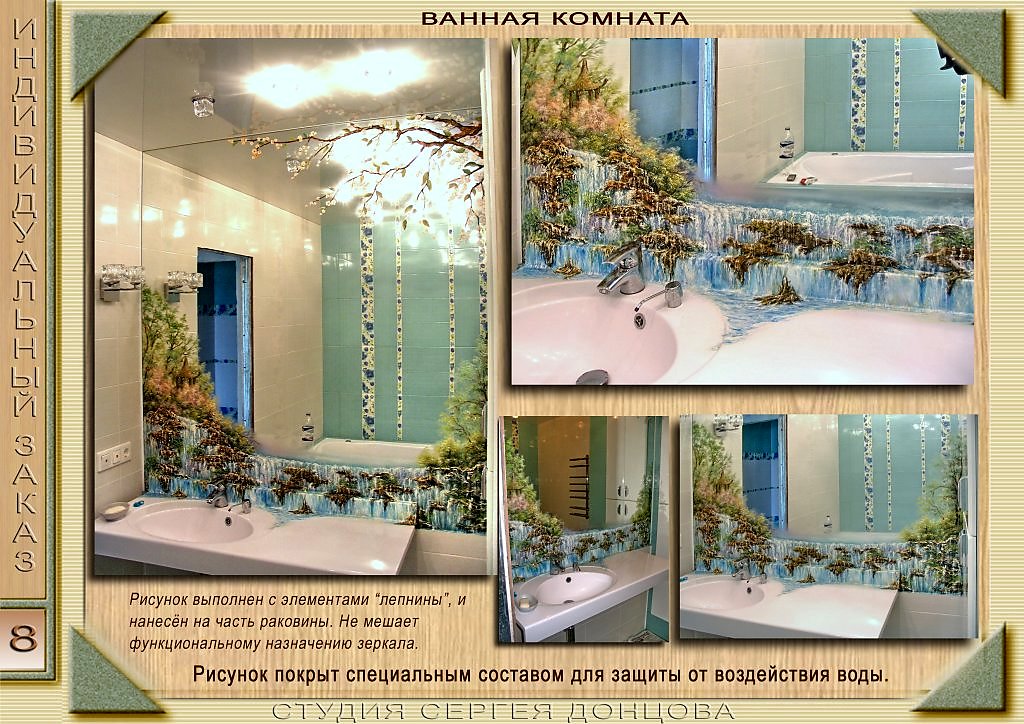Оформление зеркала в ванной комнате.