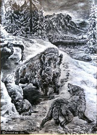 " Охота " гравировка по стеклу алюминием.