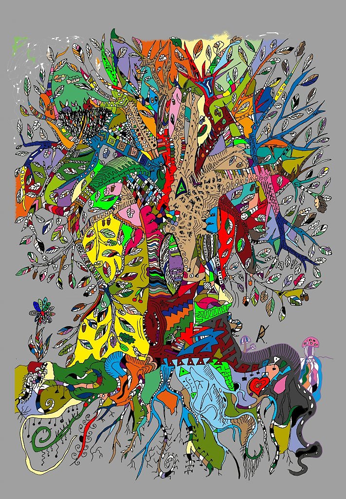 На первый взгляд ничего не понятно. Что заметила : цветочек, птичка, гусеничка, мухомор, корни, ветви.))) |