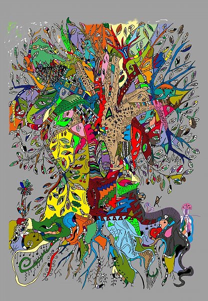 Интересная картина! Кроме разных мелочей хорошо видна фигура сидящего человека с руками-ветками.