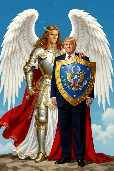 Но это было только начало. Вскоре в сети появилось новое изображение: сам Дональд Трамп, улыбающийся и довольный, обнимается с могучим Архангелом Михаилом. Да-да, тем самым Архангелом, который, как гласят древние предания, поверг самого Люцифера в бездну.