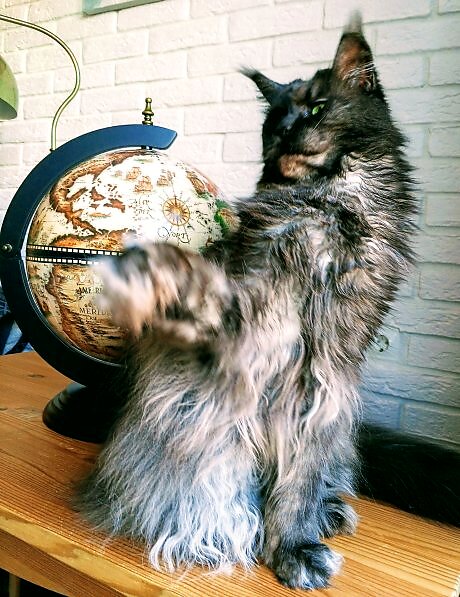 - Когда я ложусь на глобус, то голова и хвост висят в воздухе! А так быть не должно! Когда я ложусь на диван, всё встаёт на свои места, - говорила она, демонстрируя стальные когти. Я соглашаюсь, с тревогой смотря на мускулистые лапы))). |