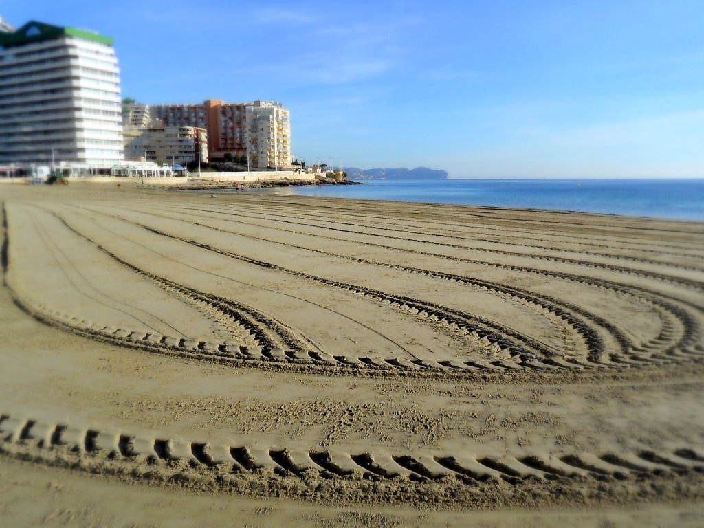 Интересная фотография! Но отчего же эти следы? Неужели чистили или насыпали пляж? Очень любопытно!