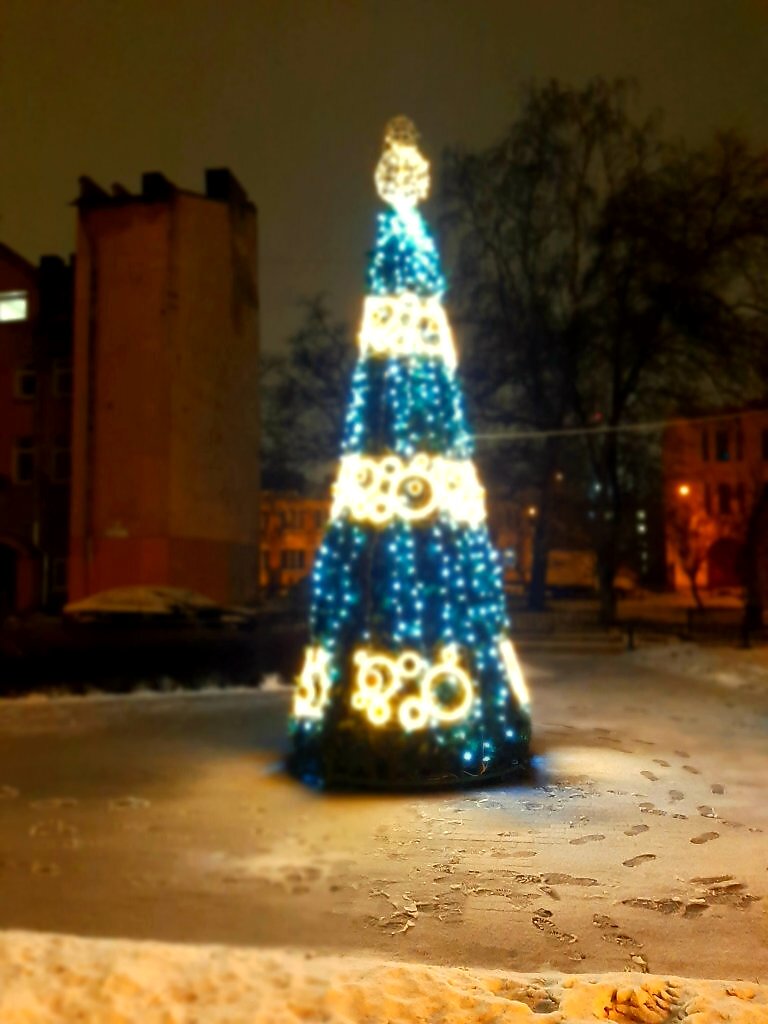 Елка во дворе у нас стоит уже несколько дней, а снежок, после недели морозов (даже чуть больше) пошел лишь сегодня.