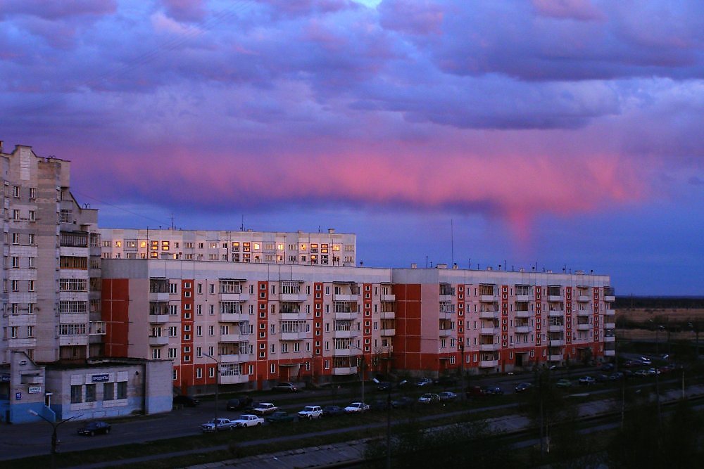 Вроде бы на закат или рассвет похоже. Неужели это белые ночи в Питере??