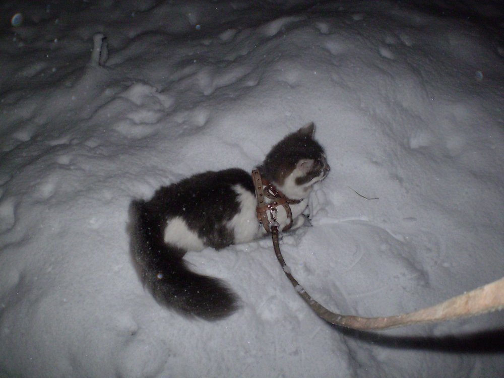 Если бы не поводок, Юль, ощущения были бы другие... Жалко бы было бедолажку мелкую. А так... Все хорошо, первый снег в жизни четвероногого ребенка! ))))))