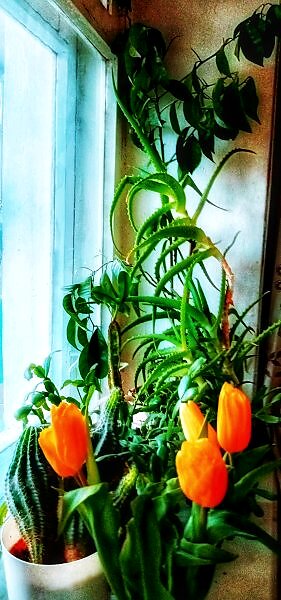 ![]() ![]() Красиво! А тюльпаны тоже выращены на окне? Или они куплены и стоят в вазе?