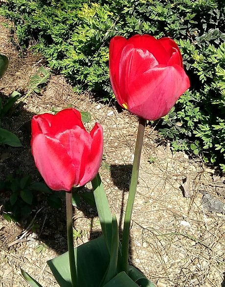 Одна из фотографий тюльпанов от 17 апреля 2025 года. Новороссийск, ул. Михаила Борисова, у пересечения с ул. Пролетарская.