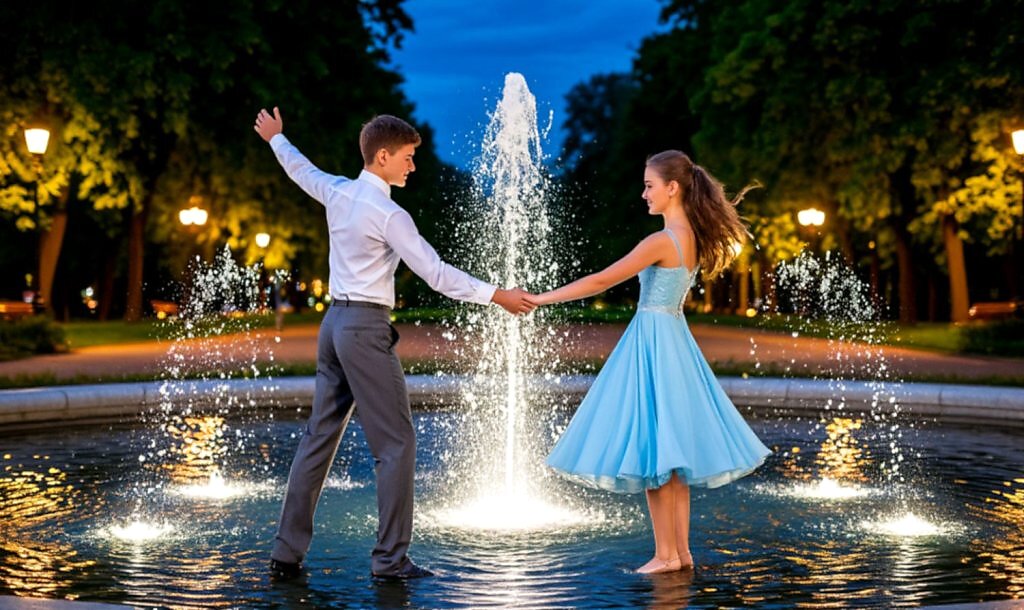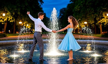 Танец у фонтана -миг любви нежданной,