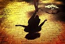 Но дождь потихоньку моросил с небес. И на земле стали образовываться лужи. На одном из крутых склонов в городе машины ехали гуськом друг за другом вверх по улице, обдавая снизу фонтаном брызг идущих по тротуару людей. На мокрой дороге лежали приклеенные дождем редкие золотые фантики опавших листьев. А вода от дождя медленно стекала вниз со склона на низлежащую улицу. Вы когда ни - будь, видели рисунки текущей воды, когда она стекает тонким слоем слюды вниз? Я первый раз увидела эти орнаменты воды, подымаясь по этому склону вверх, и обратив внимание на текущую воду. Наверное, в зависимости от неровностей на асфальте, от наклона тротуара, вода на своем пути вниз рисовала разные узоры. В одном месте это просто был ажур из полукругов, которые наплывали друг на друга, создавая на мокром асфальте динамичное кружево. В другом месте вода прорисовывала ромбическую сеточку, похожую на сетку в женских модных чулках. В третьем месте вода текла почему- то по диагонали в пределах определенного отрезка. И мне это напомнило узор диагональной косичкой в вязке спицами шерстяных изделий. На ровной поверхности мелкие капельки наполняли блюдца луж. Включили вечернее освещение фонарей. И, лужи начали искрить от капель желтыми блесточками. Черные лужи, похожие на ночное небо, и в них искорки, похожие на звезды. Только от этих искорок расходились плавно по воде медленные круги. Вроде звездочки в лужах испускали свет. Люди вокруг спешили под зонтами. Спешили с работы - кто домой, кто на рандеву. Но кто из них посмотрел себе под ноги? На эти узоры, которые рисовал осенний художник дождь? Наверное.. никто…