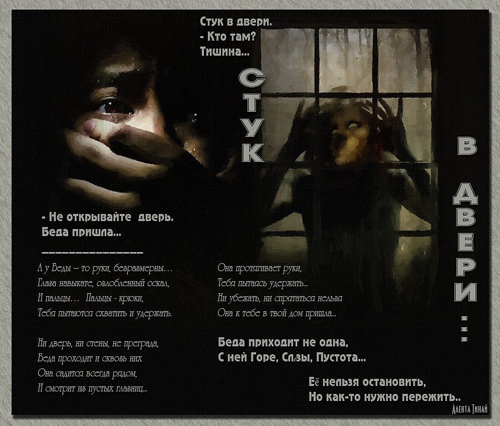 Беда проходит и сквозь них... Она садится всегда рядом, И смотрит из пустых глазниц...Без слов))) |