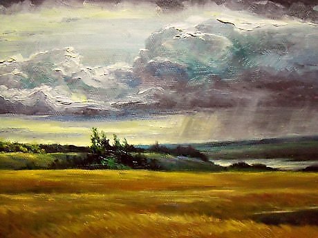 "...Торопиться не надо-выслушай слово Правды,потерянной среди грозы. Фронт грозовой над раскинутым полем Станет прелюдией новой любви." |
