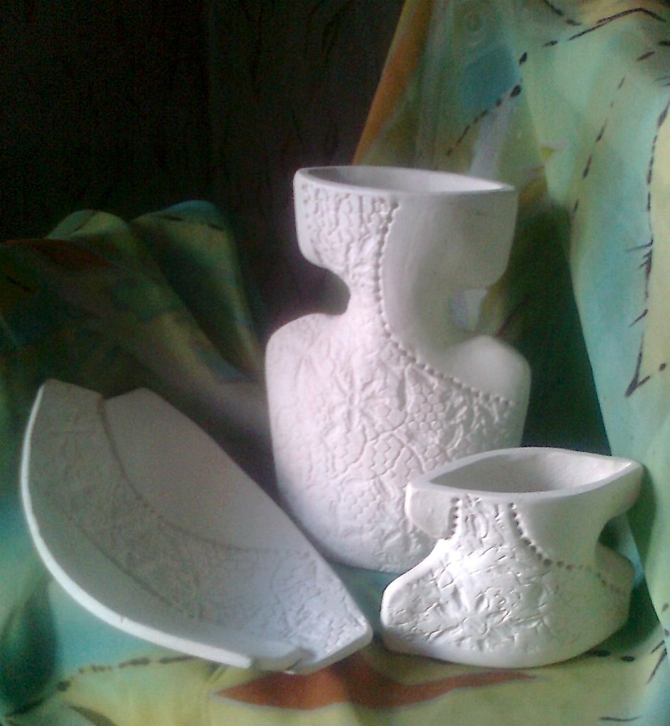 выполнен с помощью оттиска с кружева, фаянс