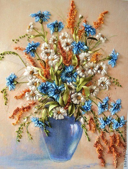 Получаю истинное наслаждение, когда вышиваю столь милые сердцу и глазу цветы. Во истину русский букет. Без этих простых полевых цветов природа была бы неполноценна.