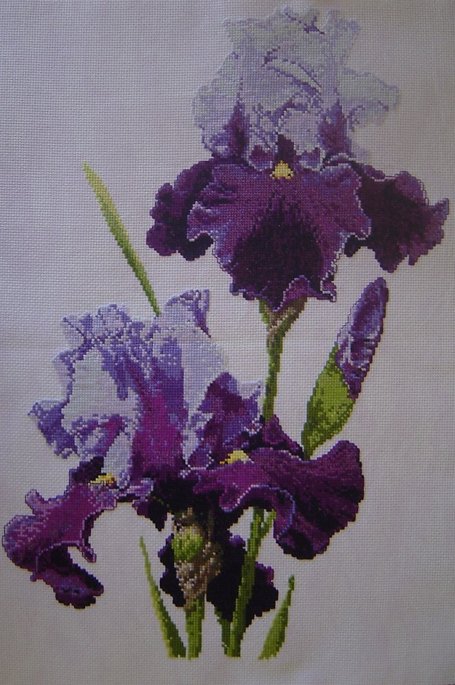 Работа выполнена на винтажной канве лилового цвета 100% хлопок нитками ДМС /Франция/. Дата исполнения - 2009 год. Размер - 30 х 45 см. В багет не оформлена. Цена - 14 000 рублей.
