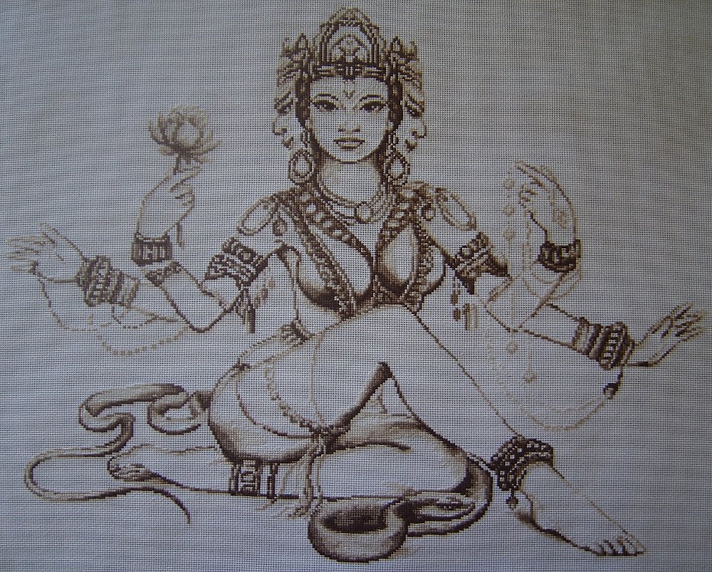 Работа выполнена в технике счетный крест на белой канве 100% хлопок нитками ДМС /Франция/. Дата исполнения - 2009 год. Размер - 53 х 45 см. В багет не оформлена. Цена - 15000 рублей.