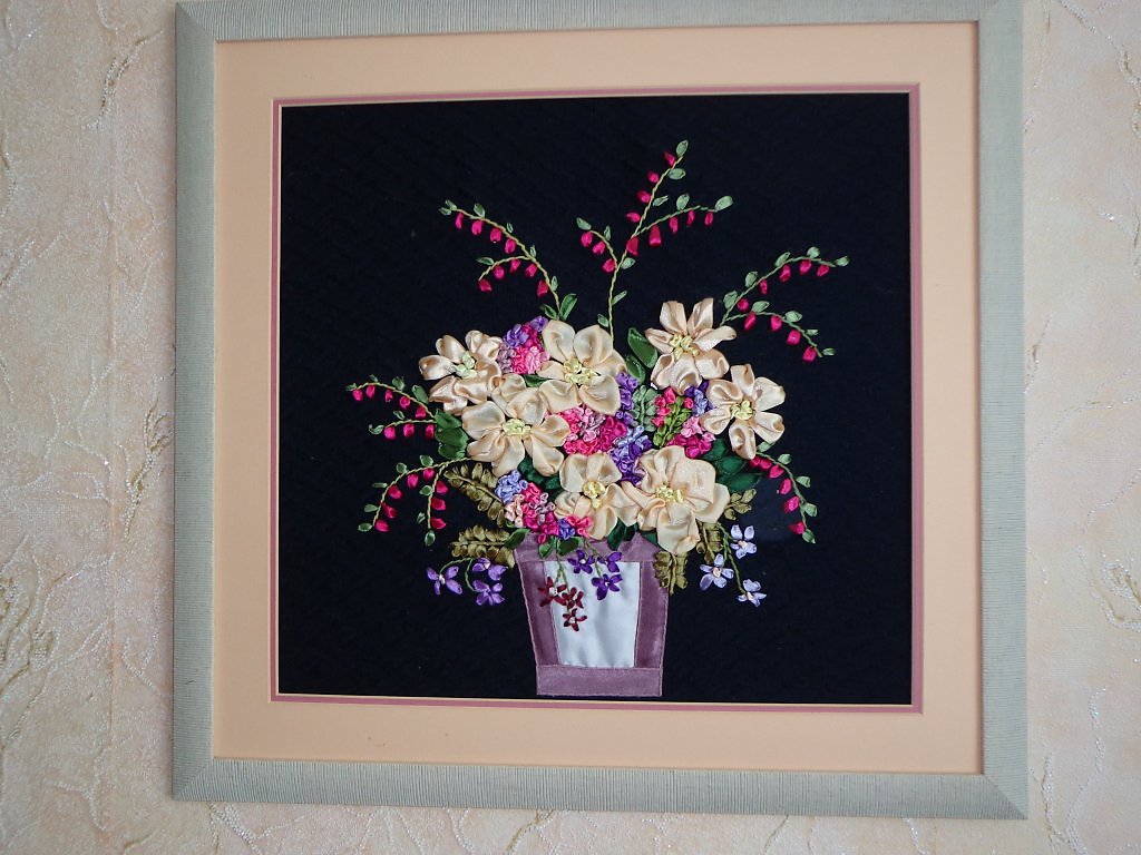 500$, 40x70, вышивка лентами, в багете
